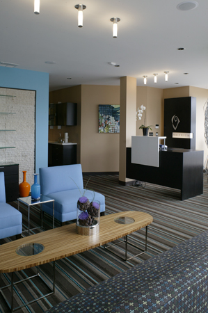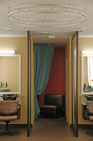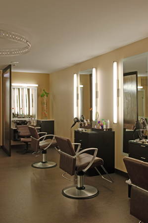 Valerium Salon embodies the spirit of the philosophy, “All things evolve.” From conception to fruition, the guiding force of the Italian-inspired, Northwest flavored interior was to create, in patrons, a spa-like feel: relaxed and beautiful with clean lines and bursts of color. Developed by local Interior Designer, Mark Haidle, highlights include cabinetry by local artisan Brian Gualtieri, hand-chiseled limestone tile from Ann Sacks, cast resin floor-to-ceiling dividers embedded with beach grass, and a Bruck flight ring incandescent chandelier appointed with clear and cobalt lamps.